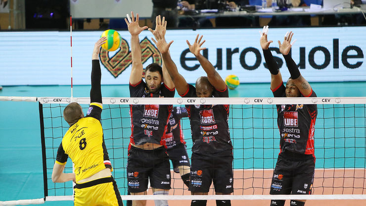 CUCINE LUBE CIVITANOVA: Sokolov 10, Kovar 4, D'Hulst, Marchisio (l), Juantorena 12, Massari 3, Stankovic 10, Diamantini n.e., Leal 11, Cantagalli 1, Cester n.e., Simon 7, Bruno 2, Balaso (l). All. De Giorgi.